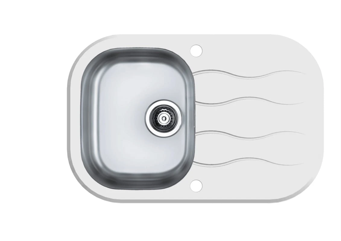 ALVEUS Zlewozmywak 76x50 WAVE 20 stal, białe szkło, syfon 1102729 (W45) *