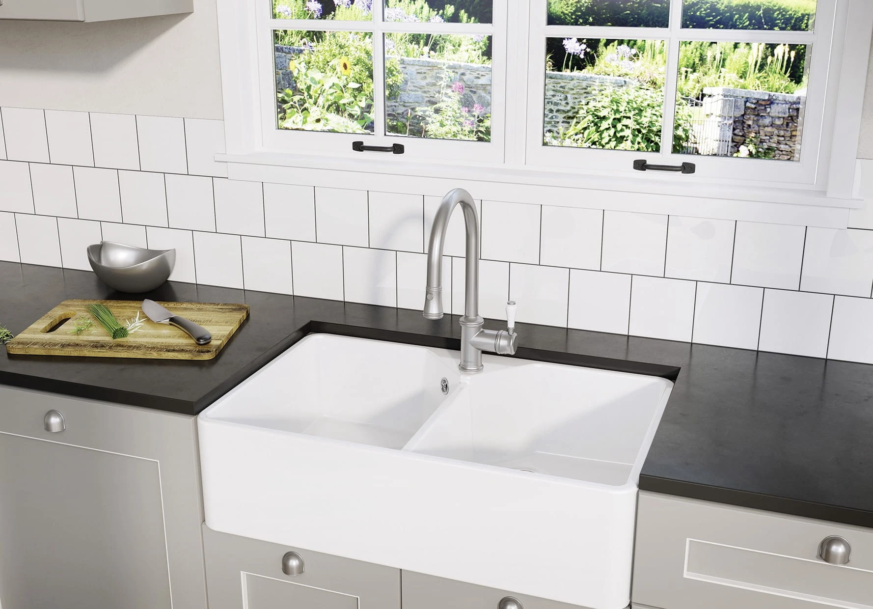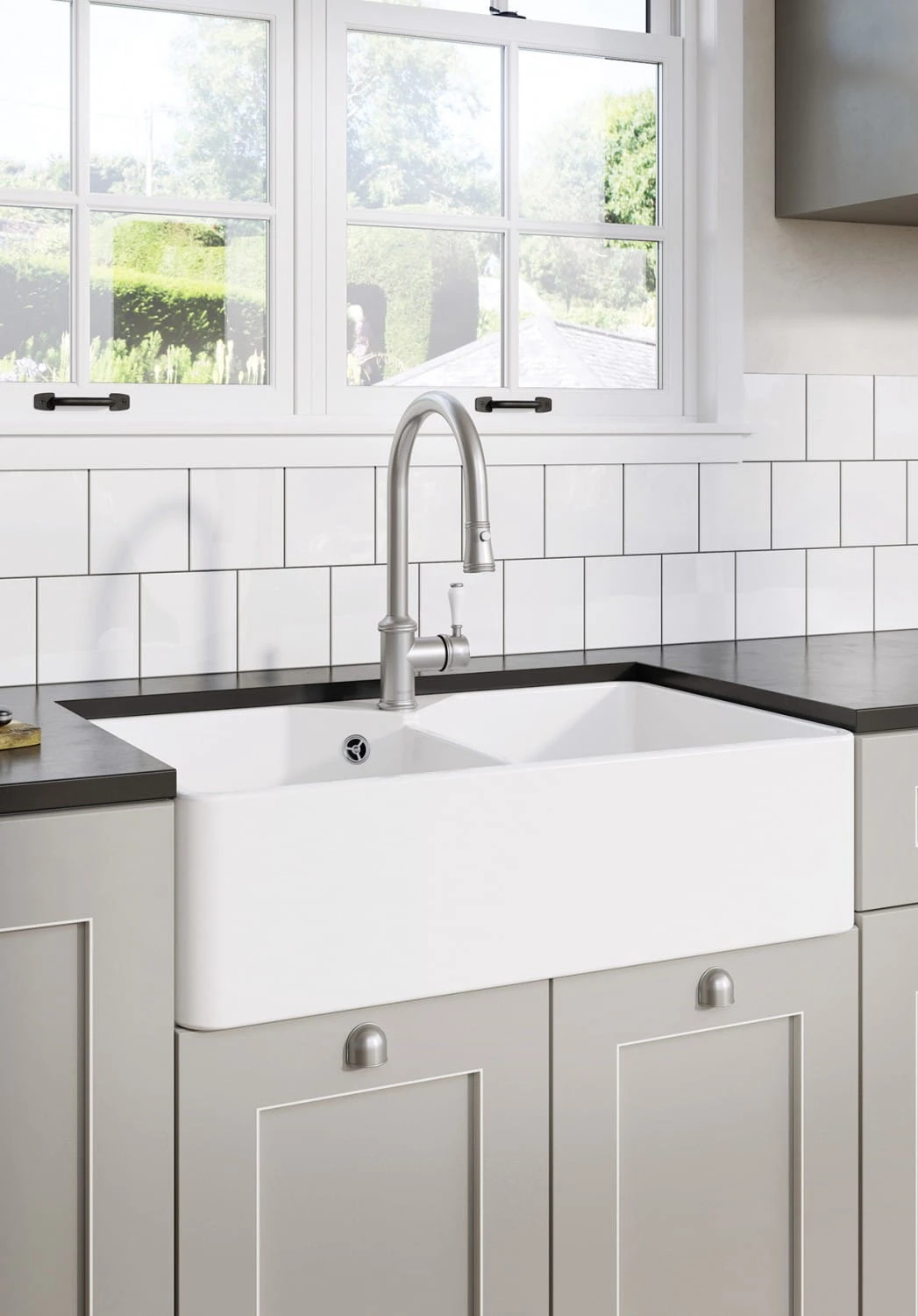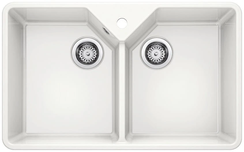 BLANCO Villae to elegancki zlewozmywak ceramiczny w stylu modern farmhouse. Minimalistyczny design wraz z wysuniętą komorą sprawia, że pasuje do kuchni w stylu klasycznym, skandynawskim, rustykalnym, a nawet i nowoczesnym. Dostępny w wersji jedno- lub dwukomorowej.