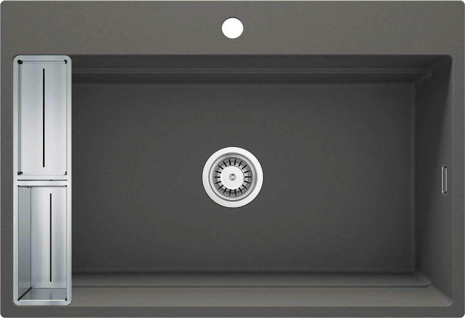 Zlewozmywak granitowy magnetyczny jest to bardzo pomysłowe rozwiązanie. Dzięki wbudowanym magnesom i stalowej maskownicy część bocznej półki może zostać wykorzystana na zwiększenie funkcjonalności. Powszechnie wiadomo, że w suchym środowisku drobnoustroje nie rozwijają się zbyt szybko, dlatego proponujemy także dedykowane akcesoria uzupełniające. Do ściśle przylegających koszyczków z ażurowym dnem włożysz sztućce, a ściereczkę czy zmywak kuchenny powiesisz do odsączenia na uchwytach. Zlewozmywak granitowy magnetyczny jest odporny na przebarwienia, uderzenia i wysoką temperaturę, zgodnie z normą europejską PN-EN 13310. Zgrabny, 1-komorowy zlewozmywak to doskonałe rozwiązanie w małych kuchniach i kawalerkach z aneksem. Projektantki Katarzyna Łogwinienko i Magdalena Paszkowska udowodniły, że nawet z pozoru zwyczajny zlewozmywak może stać się multifunkcyjnym urządzeniem kuchennym. Umiejscowiona z jednej strony półka, oddzielona maskownicą daje dodatkową przestrzeń roboczą. Produkty Magnetic można opcjonalnie wyposażyć w dedykowane tej serii koszyki, reling i haczyk, które występują w trzech wykończeniach: stal szczotkowana, bianco oraz nero.