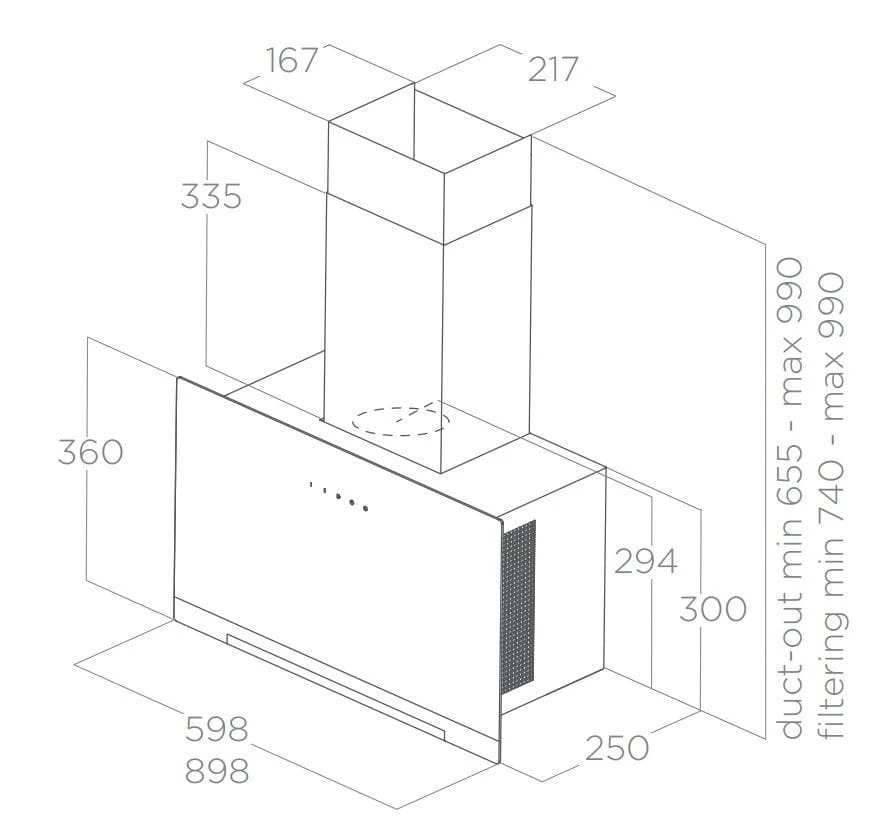Okap naścienny o szerokości 89.8 cm, pracujący z wydajnością 275 - 495 m3/h, w trybie intensywnym osiąga wydajność 680 m3/h. Elektroniczne sterowanie, klasa energetyczna A. Oświetlenie LED 1 x 3 W. Ilość prędkości: 3 + tryb intensywny. Poziom hałasu: 51 - 64 dB.