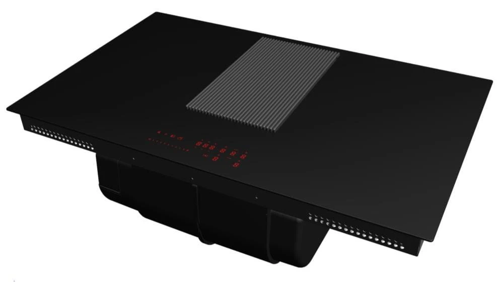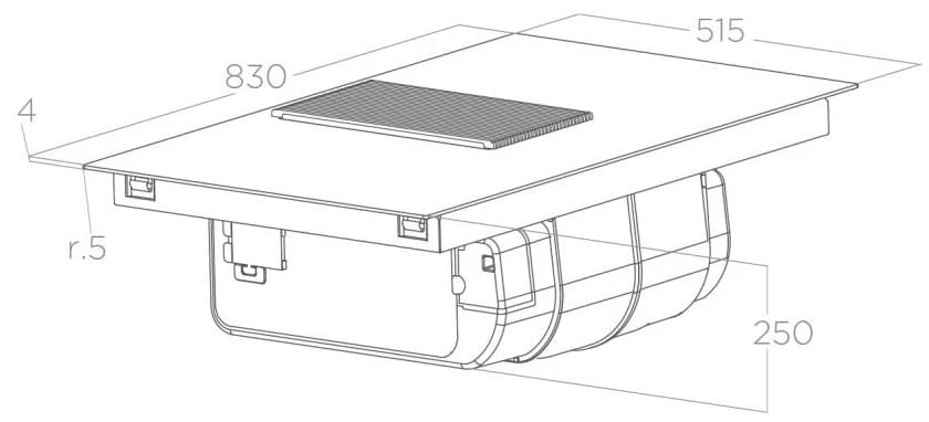 Płyta indukcyjna z systemem zasysania, o wymiarach 25 x 83 x 51.5 cm oraz o mocy całkowitej 7200 W. System zasysania działa w trybie pochłaniacz, klasa energetyczna A. Ilość pól grzejnych - 4. W komplecie KIT0167757 (zestaw do montażu jako pochłaniacz - wylot w cokole).
