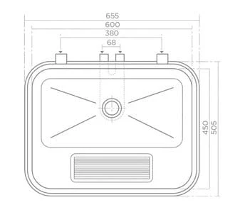 65,5x50,5x25 cm; poj. 47 l; bez przelewu, bez syfonu, z otworem odpływowym, elementy mocujące; montaż na ścianie