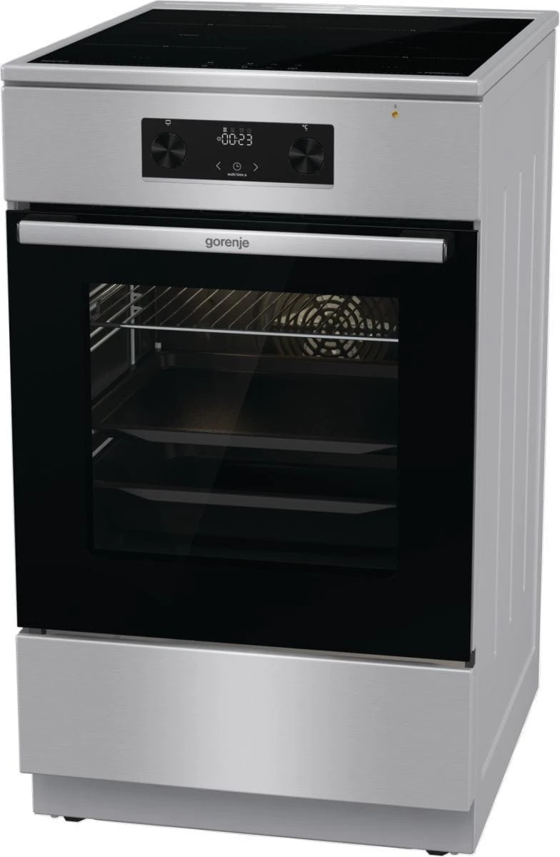 Kuchnia z płytą ceramiczną GORENJE GEIT5C61XPG 740742 o szerokości 50 cm i głębokości 59.4 cm. Ilość pól grzejnych - 4. Pojemność piekarnika 70 l. Czyszczenia komory pieczenia: Aqua Clean. Ilość szyb w drzwiach - 2. Rodzaj prowadnic: 1 poziom częściowo wysuwanych prowadnic teleskopowych.