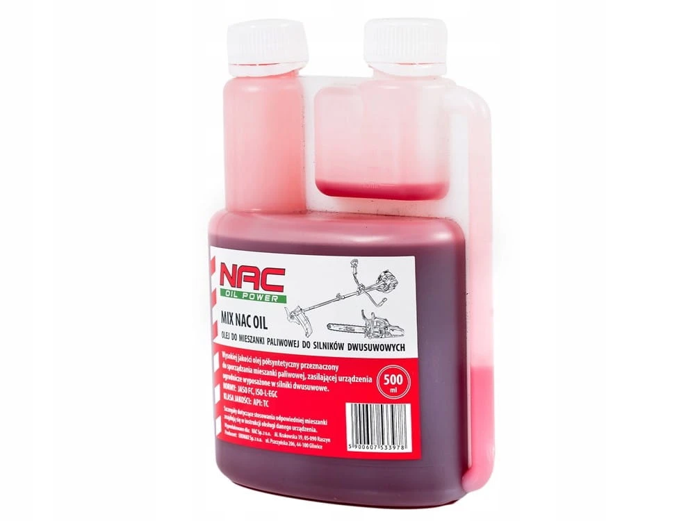 Olej NAC MIX to najwyższej klasy półsyntetyczny olej silnikowy, przeznaczony do sporządzania mieszanek paliwowych stosowanych do zasilania silników dwusuwowych w urządzeniach ogrodniczych takich jak: kosy i podkaszarki, pilarki spalinowe, odkurzacze ogrodowe, opryskiwacze czyli wszędzie tam gdzie zastosowano silnik dwusuwowy.