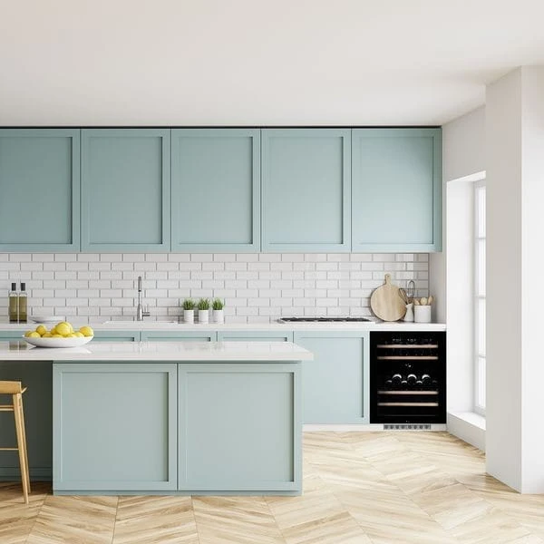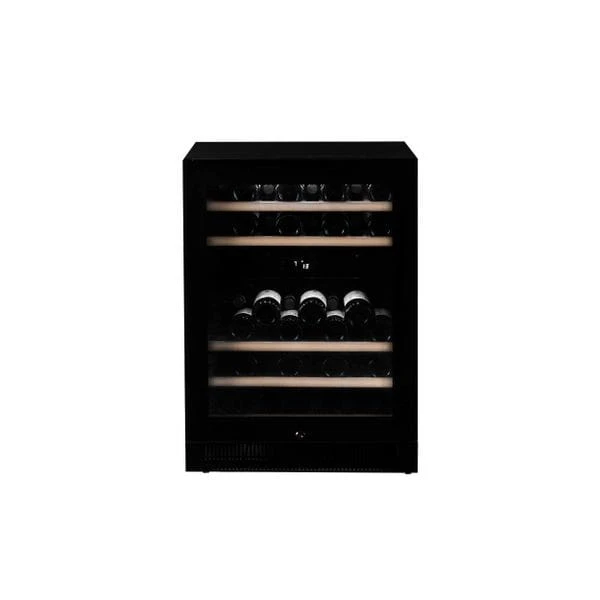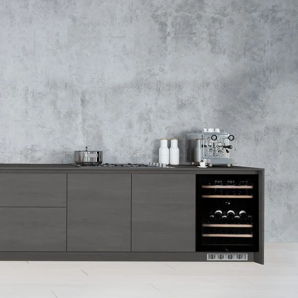 Vestfrost WFG 47 to elegancka winarka do zabudowy lub postawienia wolnostojącego, zaprojektowana dla miłośników wina. Pomieści do 44 butelek i oferuje dwa niezależne obszary chłodzenia (Dual Zone) z regulacją temperatur: górny zakres 5–10 °C i dolny 10–18 °C. Ochronę trunków zapewnia pełna, przyciemniana szyba z filtrem UV, a energooszczędne oświetlenie LED podkreśla zawartość bez narażenia jej na ogrzewanie. Wnętrze wyposażono w cztery drewniane półki z nieobrobionego buku oraz dolną półkę tej samej jakości, absorbującą drgania dzięki strukturze drewna. Kompresor pracuje w technologii wibracyjnej, co minimalizuje hałas i chroni osad w winie. Urządzenie posiada elektroniczny wyświetlacz temperatury, automatyczne odszranianie, alarm wzrostu temperatury oraz możliwość zablokowania panelu. Dzięki regulowanym nóżkom (82–87,5 cm) idealnie dopasujesz je do zabudowy, a zintegrowane, ergonomiczne uchwyty ułatwiają otwieranie.