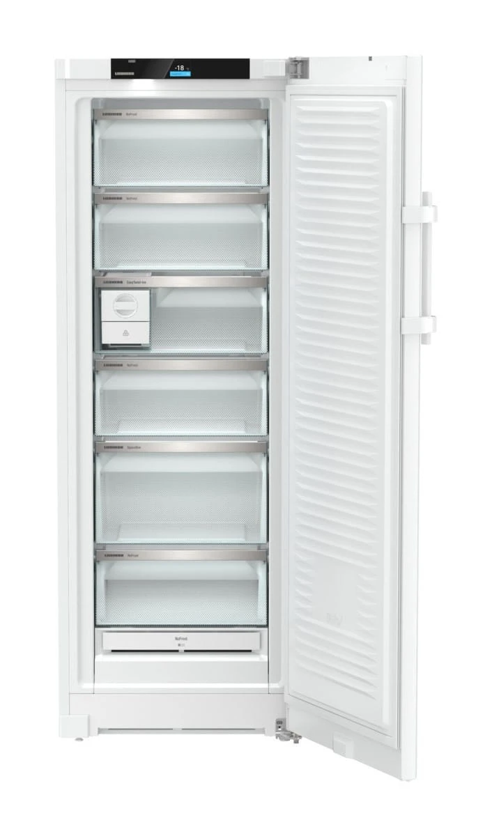 Zamrażarka LIEBHERR FNb 505i Prime 995022351 wolnostojąca o pojemności zamrażarki 239 l. Urządzenie w klasie energetycznej B. Rozmrażanie zamrażarki No-Frost. Zamrażarka o wymiarach 165.5 x 59.7 x 65.5 cm. Kolor Biały. Poziom hałasu 33 dB.