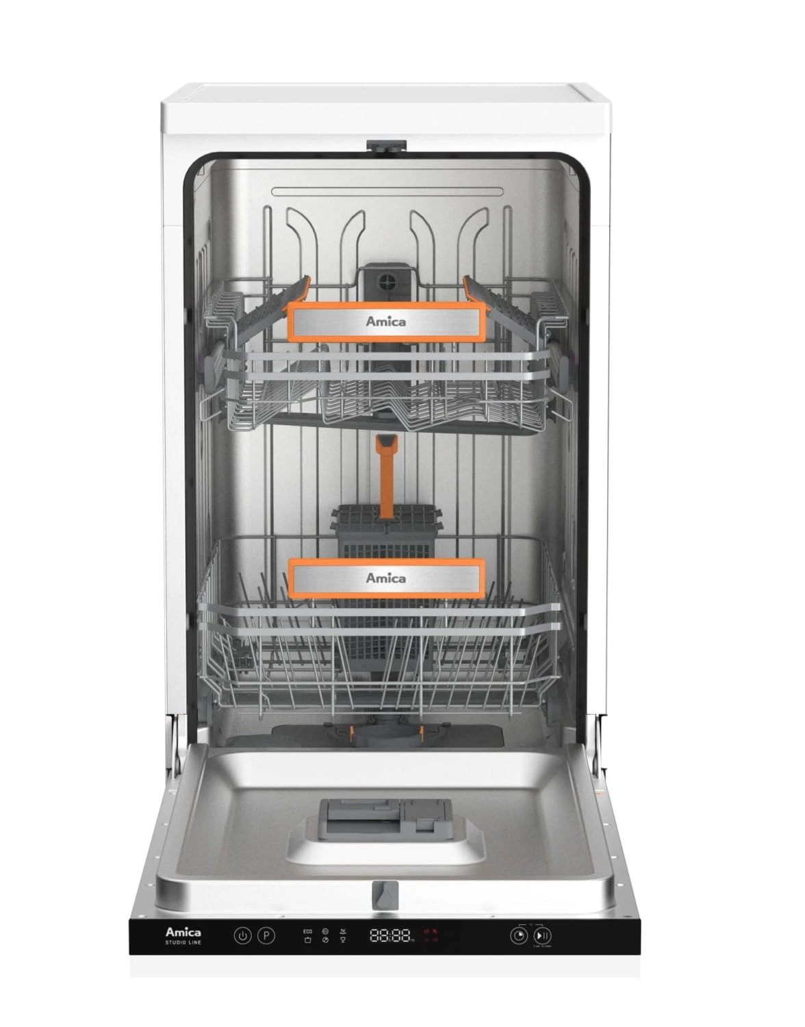 Zmywarka AMICA DIF44E6i STUDIO z funkcją SlidingDoor, sterowaniem sensorowym i silnikiem SilentDrive 3.0 zapewnia ciche i skuteczne mycie. Filtr samoczyszczący, SteamPower®, AquaStop i AntiBacteria Filter dbają o higienę i bezpieczeństwo, a programy Szybki 30', Pełny 60' i Higiena+ zwiększają komfort użytkowania.